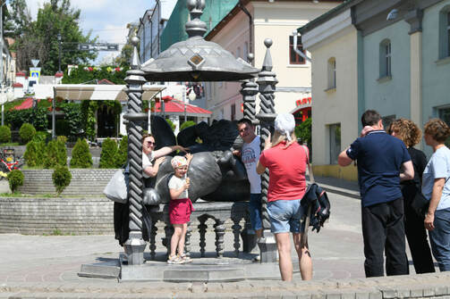 По вечерам у памятника устраивают файер-шоу, собирающие кучу зрителей. Весело всем, кроме пешеходов, которые идут по своим делам. Возможно, для огненных артистов организуют площадку.