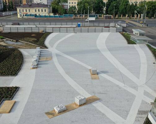 Перед парком активно строят дорожки, прокладывают сети и доделывают лестницы к Вечному огню и памятнику Неизвестному Солдату.