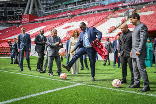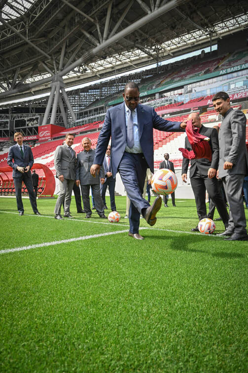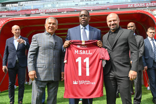 Сегодня утром президент Сенегала Маки Саль вышел на поле «Ак Барс Арены» и пару раз набил мяч. В награду получил аплодисменты и футболку «Рубина» с 11 номером.