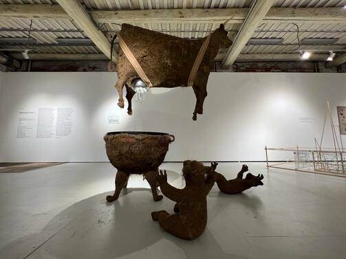 Если захочется посмотреть на корову из глины и палок, висящую под потолком, отправляйтесь в «Смену» — на новую выставку «Архипелаг грез».