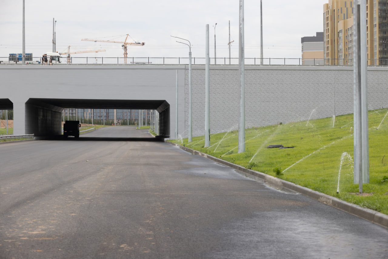 Есть три подземных перехода на Аделя Кутуя, Родины и Жиганова, а также два путепровода — на Гвардейской и рядом с ЖК «Победа». Также вдоль дороги протянули велодорожку и тротуар.