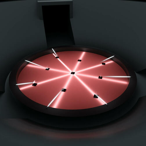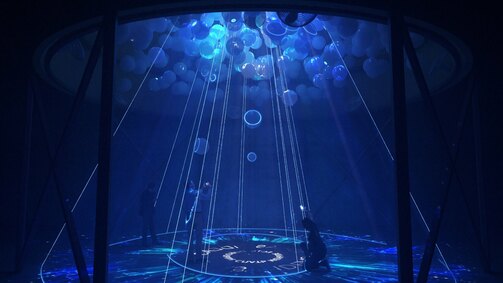 Идем гулять босиком по склонам «долины» в «Ураме» из абстрактных лазерных узоров под медитативную музыку.