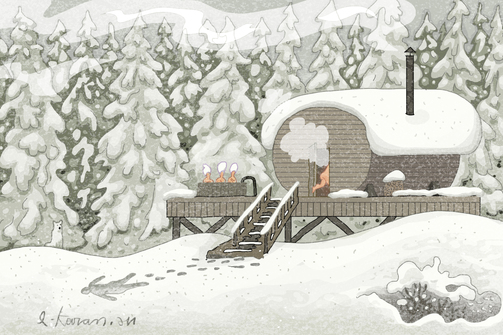 Снаружи это непримечательное кирпичное здание, а внутри — ожившая иллюстрация из пожелтевшей хрестоматии: с потолка свисают дубовые веники, мебель покрыта пестрыми подушками и покрывалами, а на столе из сруба травяной чан и полезные угощения.