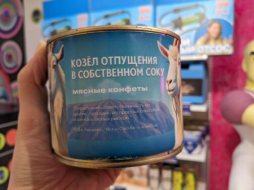 13. Консервированный туркменский таракан, змея подколодная, козел отпущения в собственном соку — хорошо, что товары здесь не продаются.