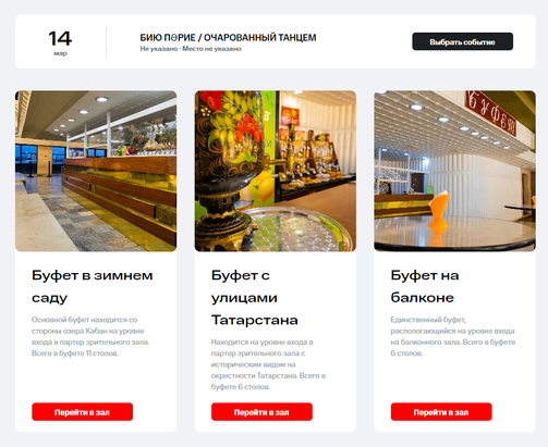 2. Выбрать свой спектакль и буфет. Их в театре Камала три: