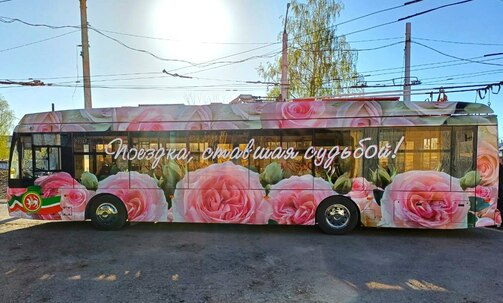 Таинственный бизнесмен, подаривший Казани два троллейбуса любви, обновил один из них. Теперь он стал более розовым и просто утопает в цветах.