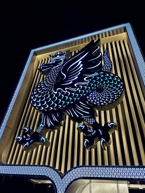 Конструкция четырехметровая, покрыта нержавеющей сталью и алюминием, буквы и герб украшены перфорацией. Но еще не все доделано. Завершат до конца августа, сообщили в комитете внешнего благоустройства