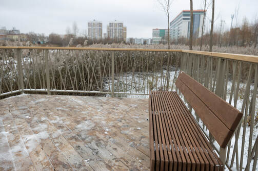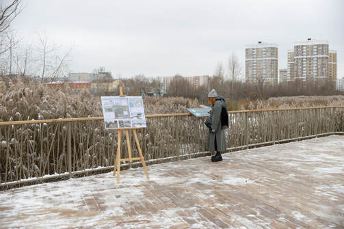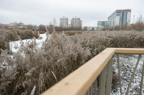 На территории, которая раньше была за забором, обустроили пирсы для наблюдения за птицами, ондатрами и бобрами, проложили дорожки для прогулок, открыли павильон для будущей кофейни, высадили 350 деревьев и около тысячи кустарников. Еще появилась новая входная группа между перинатальным центром и храмом в честь святителя Тихона.