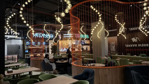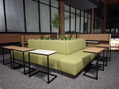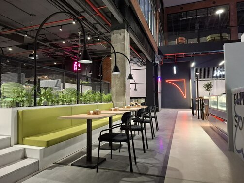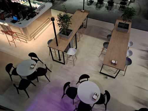 4. Если не поесть, то поработать: в ТЦ предусмотрена большая зона для людей с заряженными ноутбуками (розетки около столиков пока закрыты).