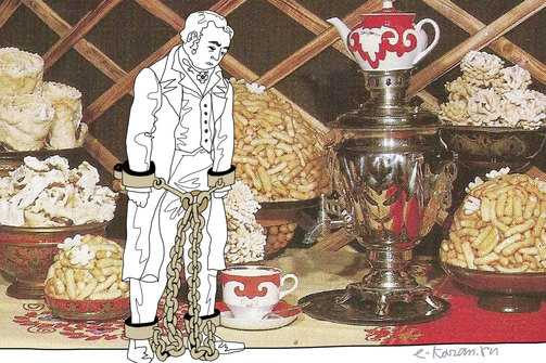 В середине 19 века медик и этнограф Карл Фукс проехался по Татарстану и записал, все что увидел. Получилась целая книга о «чайной пытке». Ну не совсем о ней, а скорее о быте татар, но чай и «чайная пытка» там тоже упоминаются.
