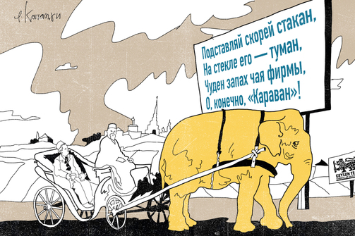 Пока одни размещали рекламные объявления о чае, другие — писали ему стихи. Среди не казанских продавцов выделялось чайное товарищество «Караван». Его лавка находилась на месте гостиницы «Татарстан». С чаем «Каравана» связана одна из крупнейших чайных рекламных кампаний Казани, в которой поучаствовал Тукай. В 1908 году поэт написал стихотворение «Сутки». В нем он без лишней скромности прорекламировал чай «Караван», за что получил 25 рублей. Это отрывок: