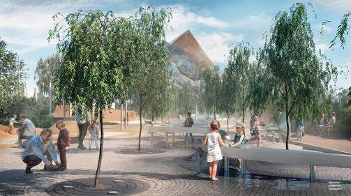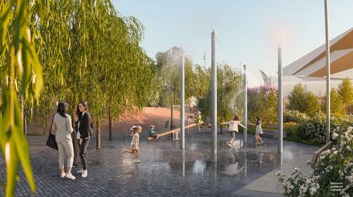 Дополнят игровую зону водоподъемным колесом с механизмом мельницы, а особым сценарием пространства станут скрытые туманные форсунки, которые будут включаться циклически, окутывая расстилающиеся вокруг ивы и создавая эффект прохлады.