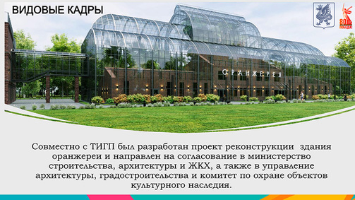 В первую очередь обновят оранжерею, которая закрыта уже несколько лет. Проект разработан совместно с «Татинвестгражданпроектом» и направлен на согласование в минстрой РТ, а также в городское управление архитектуры и комитет РТ по охране объектов культурного наследия.