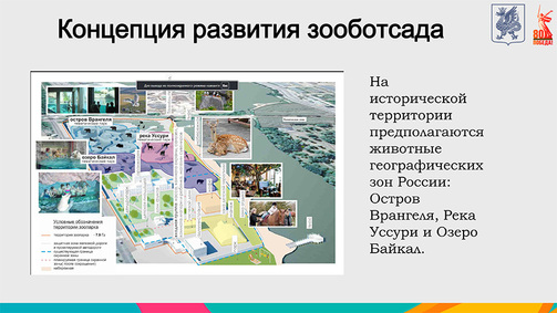 После полной реконструкции в исторической части зоопарка поселятся животные, обитающие на острове Врангеля, реке Уссури и озере Байкал. Это снежный барс, дальневосточный леопард, амурский тигр, белый медведь, морж, овцебык и другие. Для них построят вольеры, как в «Реке Замбези».