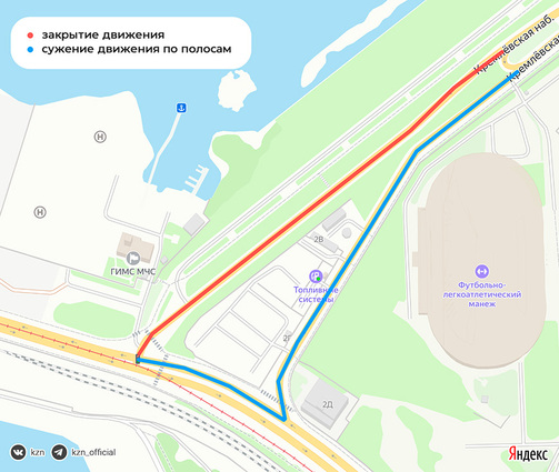 Полностью закроют участок улицы Кремлевская набережная от разворотной петли до пересечения с Саид-Галеева. На противоположной стороне ограничатся сужением полос, а на Саид-Галеева будут поэтапные ограничения — по мере продвижения ремонтных бригад.
