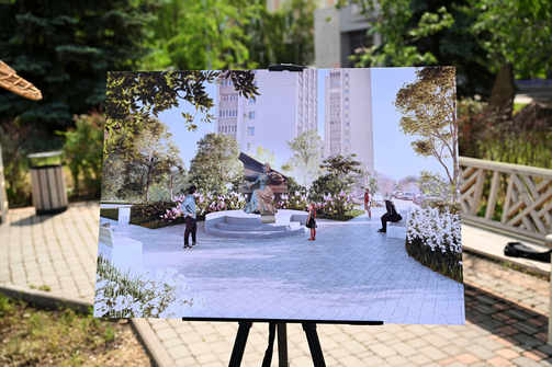 Вместе с установкой памятника благоустроят сквер. Идея основана на музыкальном образе татарского композитора и отражает плавность мелодий в виде криволинейных дорожек и цветущих растений. Появятся лавочки, декоративные кресла и освещение. Зеленую зону предлагают украсить саженцами черемухи и орешника, кустами гортензий, жимолости и барбариса.