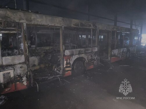 Этой ночью на территории ПАТП №2 на Крылова произошел пожар — сгорело пять автобусов. Все они 2018 года выпуска.