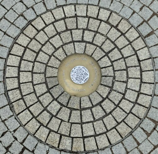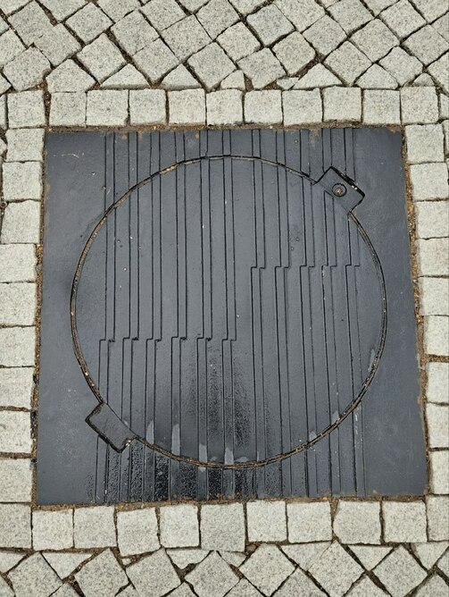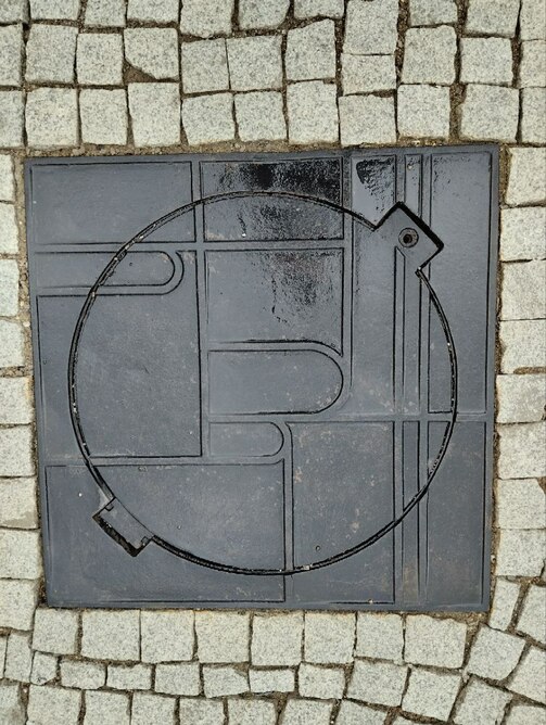 Двор Присутственных мест — настоящая находка для люкофила. Сюда можно отправиться на фотоохоту ради трех экспонатов. Двух геометричных металлических братьев с параллельными и закругленными линиями и одного люка-невидимки, который замаскировался под плитку. Что он скрывает? Все просто: раньше на этом месте был колодец, а теперь люковый арт-объект.