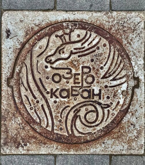 Еще один люк, который буквально кричит: «Ищите меня здесь!» Здесь — это на Черном озере. Встретить такой металлический круг можно в двух вариациях — на русском и на татарском языках.