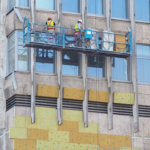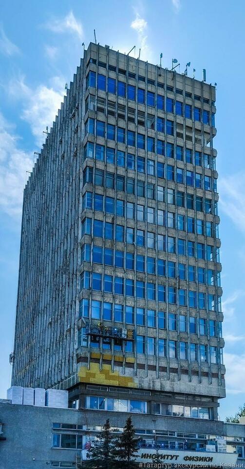 Возможно, скоро серое здание физфака КФУ обзаведется вентфасадом. Высотку обшивают утеплителем.