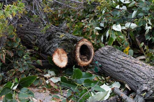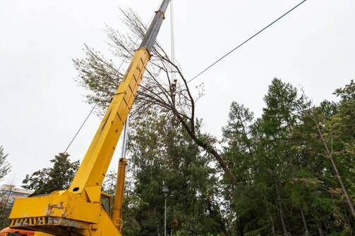 Вдоль Лядского сада спиливают аварийные деревья — на отрезке улицы Муштари от Щапова до Горького. Сносят те, что прогнили и могут упасть. На их месте обещают посадить что-то новое.