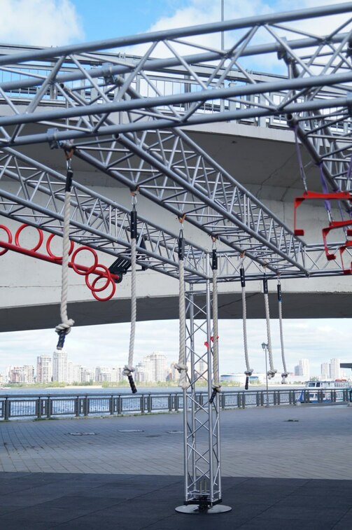 На Кремлевской набережной, под мостом, появилась универсальная тренировочная площадка с воркаут-зоной, ниндзя-залом и элементами гонок с препятствиями. Тут также установили 12-метровый контейнер с раздевалками и местом для хранения инвентаря.