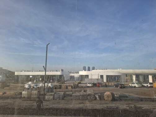 Установленные летом шумозащитные экраны уже покрылись слоем пыли, поэтому вид на другую часть комплекса такой — фотограф ни при чем.