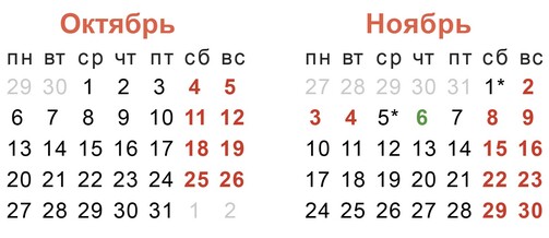 В октябре случится то, чего не случалось в сентябре — шестидневная рабочая неделя, с 27 октября по 1 ноября.