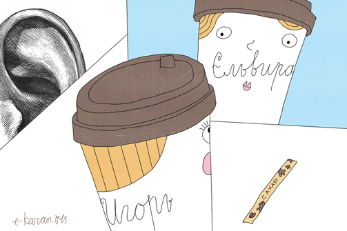 12. Бариста в кофейне «Скуратов» принимает заказ у девушки и уточняет имя, чтобы написать на стаканчике: