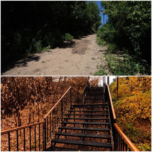 В Аметьево построили лестницу от улицы Студеной к проспекту Универсиады. Ее протяженность — 250 метров.