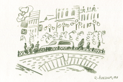 Кстати, мост был известен и под другим названием — Сенной. Это отсылка к Сенному базару, находившемуся неподалеку.