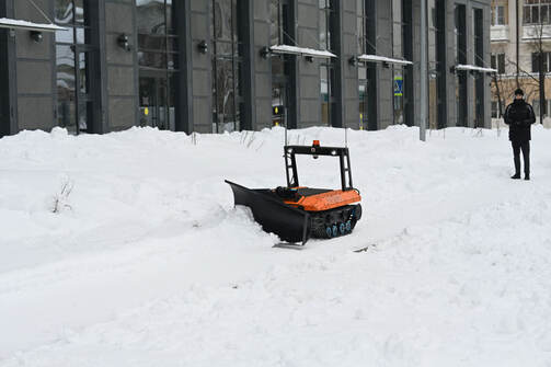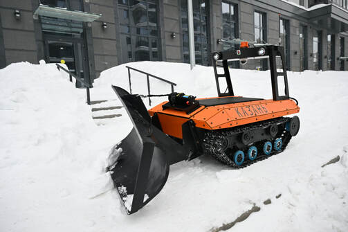 Наземные беспилотники работают парой: первый сгребает снег, а второй, двигаясь следом, отбрасывает его в сторону и разравнивает дорогу. Очистка участка площадью 100 на 50 метров занимает всего пять минут, а расчистить дорогу для проезда авто можно всего за два прохода.