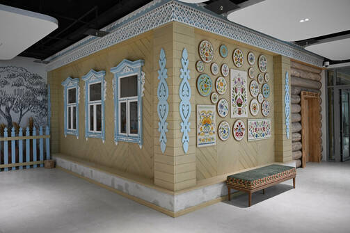 Обновленный комплекс будет с национальными оттенками. В интерьере будут деревянные элементы, а центральным арт-объектом станет кинетическая скульптура, состоящая из элементов татарского орнамента. Они будут опускаться и подниматься под татарскую музыку.