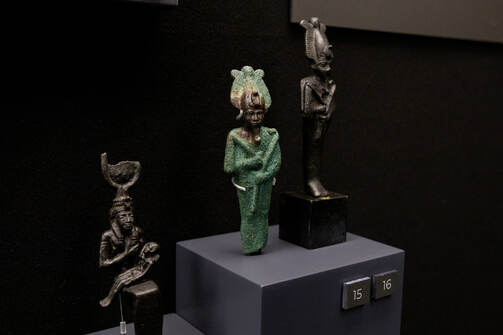 - бронзовые фигурки и фаянсовые амулеты с изображениями Осириса, Исиды, Гора и других богов;
