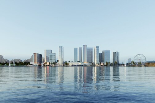 На пустыре рядом с «Ривьерой» построят наш «Казань-Сити» — «Яр Парк». Помимо стеклянных небоскребов появятся набережная с мариной, многоуровневый ландшафтный парк, яблоневый сад, прогулочная «сухая река», выложенная из камней и мха, и даже декоративное озеро.