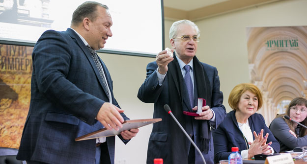 - Татфондбанк часто участвует в разных социальных начинаниях, и я благодарен Эрмитажу за то, что нас пригласили в этот федеральный и очень интересный проект Hermitage Line, - отметил Председатель Совета директоров Татфондбанка Ильдус Мингазетдинов. В знак сотрудничества директор Эрмитажа Михаил Пиотровский вручил Ильдусу Мингазетдинову почетный диплом Клуба Друзей Эрмитажа.