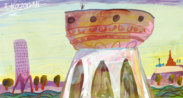 На берегу Казанки расположился гигантский казан - новая достопримечательность для казанцев и гостей города и, по совместительству, ЗАГС. Здание, построенное по проекту известного скульптора Даши Намдакова, теперь называется не «котел» и не «чаша», а «Центр семьи «Казан».