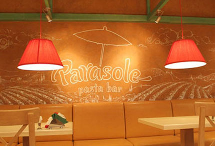 «Парасоле» делится на 2 зала, разделенных ступенькой между собой – курящий и некурящий. Некурящим выделено больше пространства, чем любителям сигарет. Еще один плюс заведения – нормальная детская зона – со столом, стульями, раскрасками, мелками и доской для рисования.
